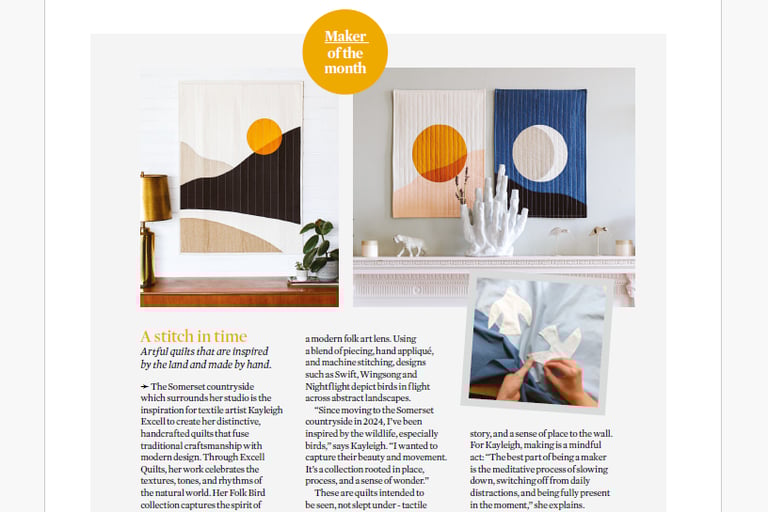 Excell Quilts has been featured in a range of publications, from independent magazines to global lifestyle websites. If you’d like to feature me or my work in your publication or on your website, please get in touch at excellquilts@gmail.com.