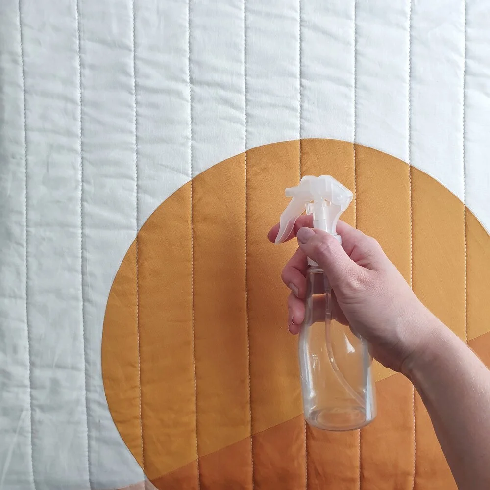 If your quilt becomes stained, spot treating is the safest option. Although my quilts are machine-stitched and could technically withstand a delicate wash, I don’t recommend machine washing—especially for quilts used as display pieces—as it can cause shrinkage or colour bleeding.